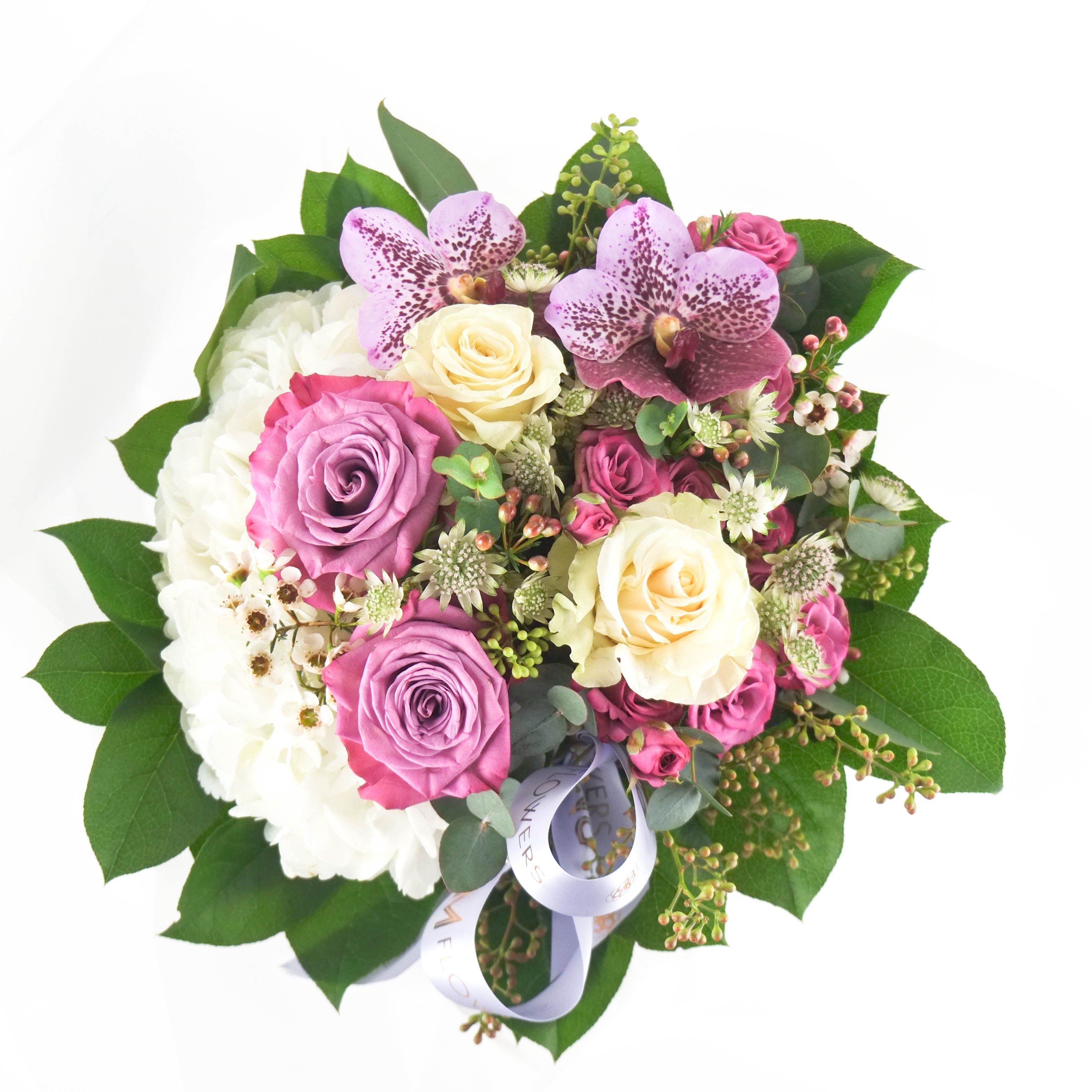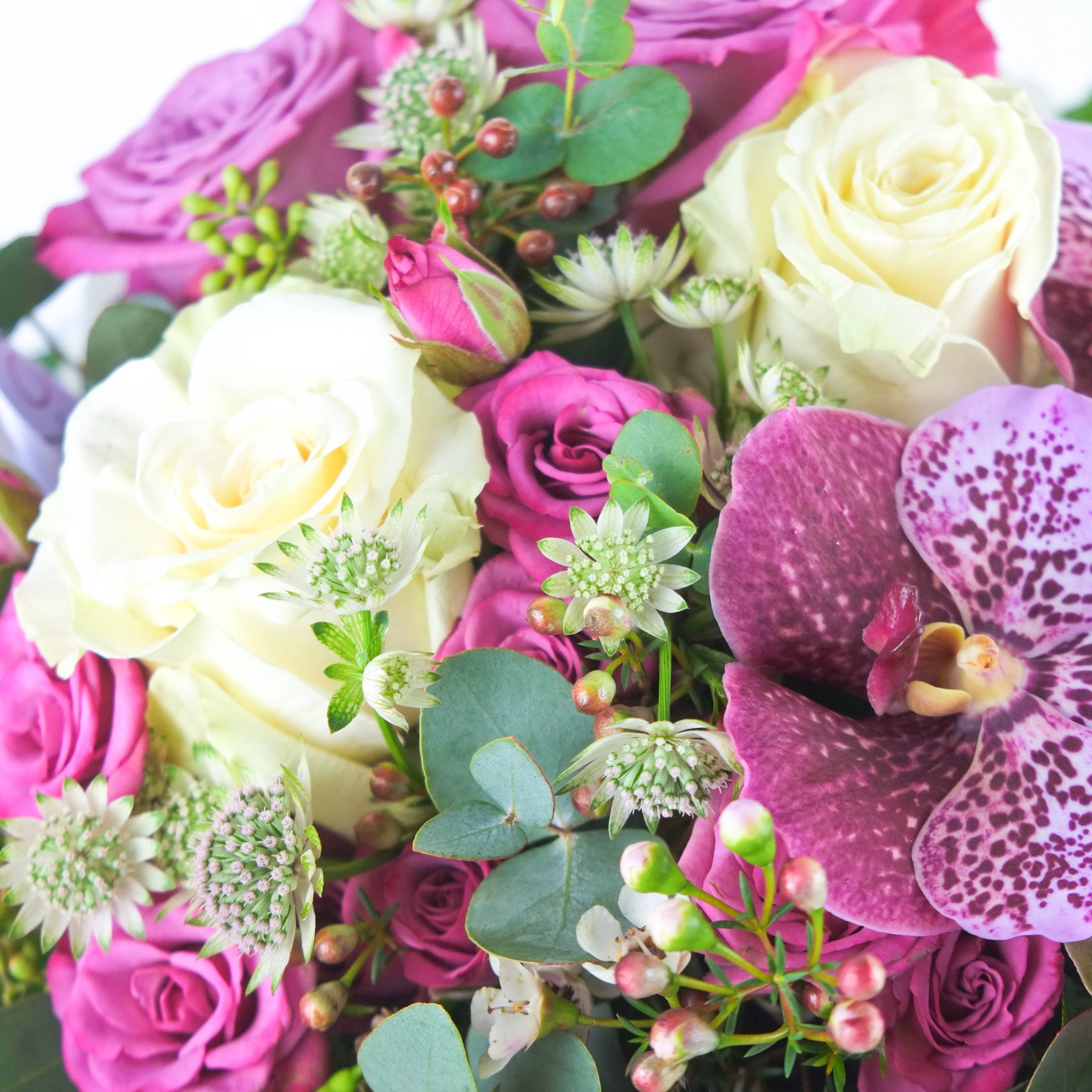الكوبية البيضاء، وأسترانتيا، والورود البيضاء الكبيرة الفاخرة والأرجوانية، وأوركيد فاندا، وقليل من الأوكالبتوس