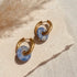 18k gold plated hoops with a marbled blue glass bead charm. Comfortable enough to wear all day, in a timeless design that will take you from day through to night.