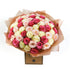 Découvrez la beauté pure de Joy , un bouquet incroyablement grand composé de 60 roses exquises dans un mélange harmonieux de blanc, de pêche et de rose cerise. Chaque rose est soigneusement sélectionnée pour sa couleur vibrante et ses pétales luxuriants, créant un arrangement à couper le souffle qui rayonne de bonheur et d'élégance.